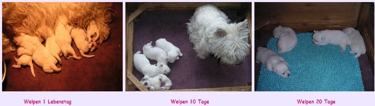 sehen alle West Highland White Terrier "Westie" Welpenbis zu einem gewissen Alter gleich aus. Und lieb und herzig sowieso! Video von unseren Westie Welpen auf Youtube: West Highland White Terrier Westie Snow-Star und Westie Snow-Starlet die etwas andere West Highland White Terrier Welpen Zucht |